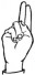 На ћирилици написано ДАНИЈЕЛ КРГА састоји се из 11 слова [?]. Исписано ћириличном једноручном азбуком за глувонеме: